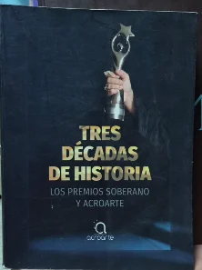 39 Tres décadas de historia. Los premios Soberano y Acroarte. Máximo Jiménez, 2023. Emelyn Baldera, presidenta. Textos adicionales de Arismendy Vásquez G. y Carlos Cepeda Suriel, con diseño de Yoni Cruz e impresión de Editora Búho. Es la memoria de 30 años de galardones del más importante premio nacional de arte popular, clásico y comunicación de la República Dominicana. Sus fuentes son las hemerotecas de los principales periódicos y el Archivo General de la Nación. Un documento fundamental y bien gestionado editorialmente por Jiménez, quien pone al servicio del producto su visión y perspectiva profesional. Tiene el valor añadido de sustentar la lista de los premiados de cada entrega a lo largo de los 30 años, con crónicas periodísticas tomadas de los principales medios escritos. Otra pieza editorialmente monumental por su dimensión física y su relevancia informativa.