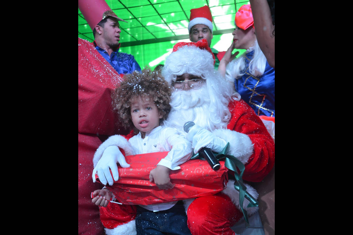 Al concluir los 45 minutos de espectáculo los niños recibieron a Santa Claus en medio de la nieve que cayó en el teatro de IFA Villas Bávaro y recibieron sus esperados regalos de Navidad.