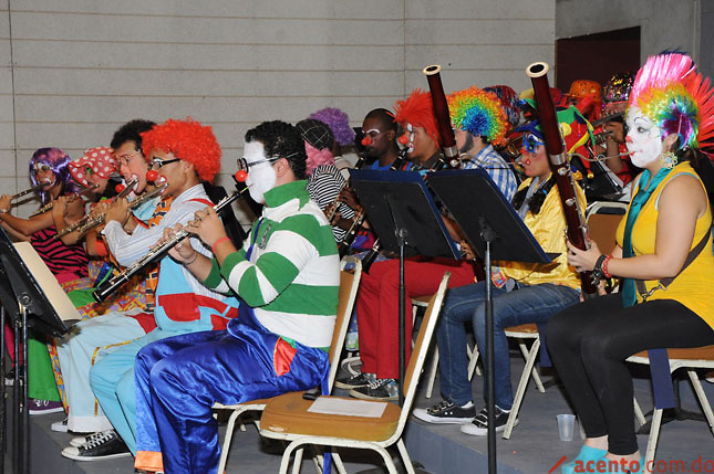 SANTO DOMINGO, República Dominicana.- La Orquesta Sinfónica Juan Pablo Duarte presentó, en la Sala Juan Francisco García del Conservatorio Nacional de Música, un concierto muy especial en el que tanto su director, el maestro Dante Cucurullo, como todos sus integrantes estaban vestidos de payasos.