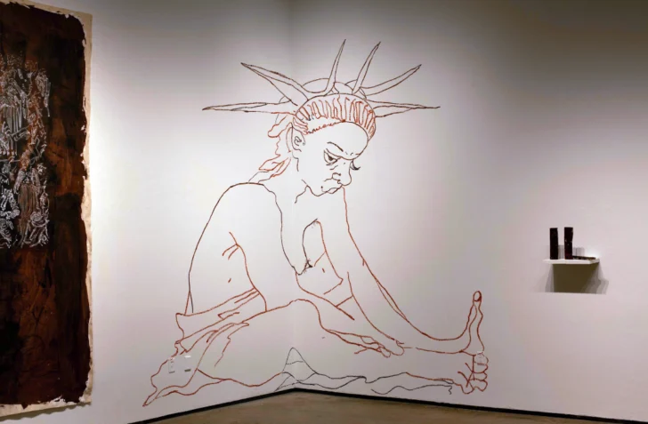 Cruz, nacida en NY en 1988 de origen dominicano, la artista sorprende por el despliegue de identidad afrocaribeña, con giros que oscilan entre el drama y la inquietud, al tiempo de desarrollar obras con líneas simples que rondan la caricatura de alto nivel aplicada con criterio de género y enorme impacto visual por su sencillez de trazado.