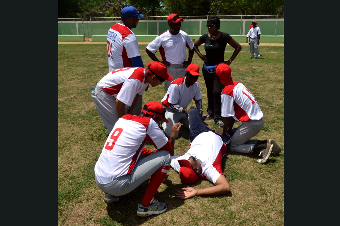 “Este juego es muy parecido al baseball con la singularidad de que, en vez de tres bases, tiene dos, y que la pelota tiene un sonido para ubicarla”, explica Eduardo Pérez entrenador de los Huracanes del Caribe.