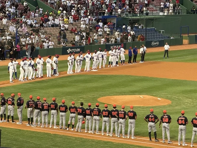 Es el primero de dos partidos de exhibición del equipo de Albert Pujol ante la novena de Detroit en el Estadio Quisqueya Juan Marichal, de cara a su participación oficial en Miami en el Clásico Mundial, en la que debutará el viernes 6 de marzo frente a Nicaragua.