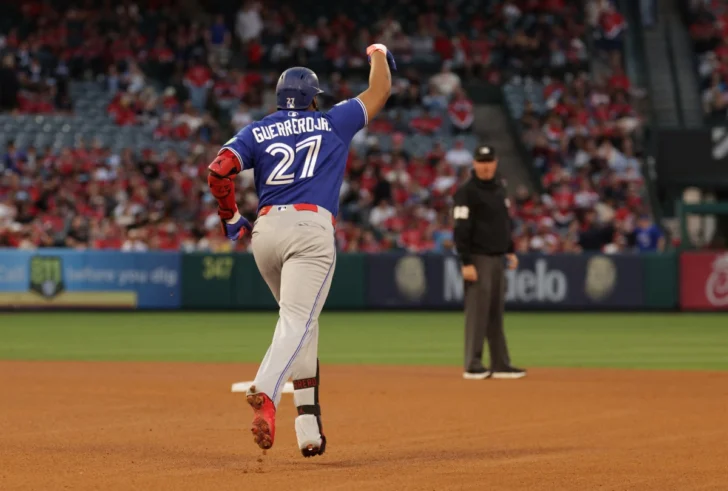 Vladimir Guerrero Jr. conectó un jonrón de dos carreras de 430 pies al jardín central, extendió su racha de hits a 11 juegos consecutivos y Dylan Cease ponchó a 12 bateadores en cinco entradas para llevarse su primera victoria con Toronto, en la paliza de los Azulejos de Toronto 5-2 sobre los Angelinos de Los Ángeles el lunes por la noche en Anaheim, en el primer juego de una serie de tres partidos.