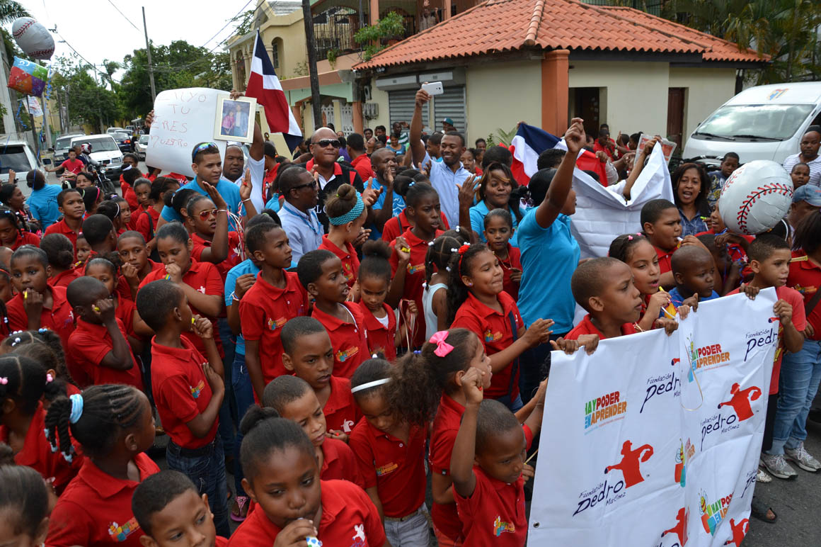 Ya pasadas las 3:15 de la tarde, cuando las Grandes Ligas anunciaron oficialmente que Pedro Martínez, el dominicano, había sido elegido para el Salón de la Fama, los niños juntos con el personal que labora en la fundación realizaron una caminata por las principales calles del sector, para de esta manera expresar su apoyo y satisfacción a un hijo digno de su comunidad.