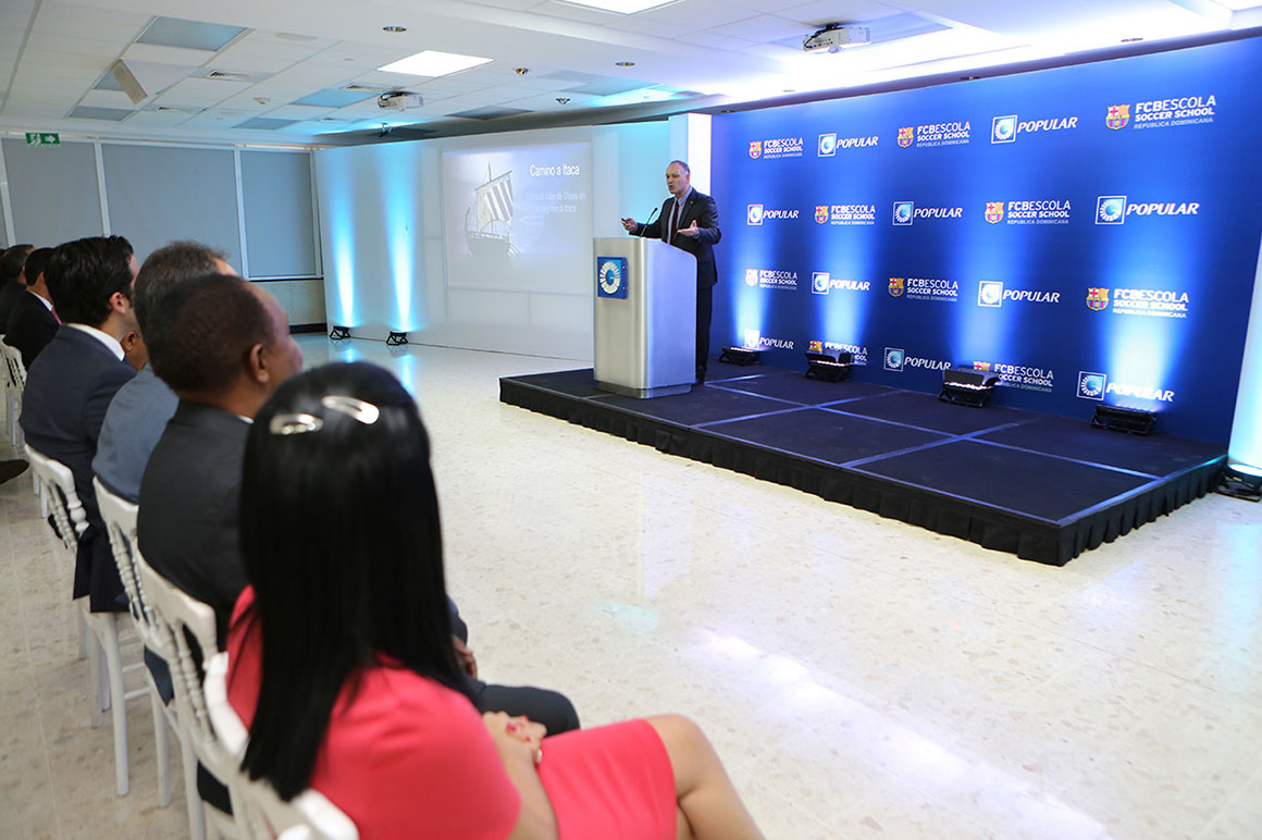 SANTO DOMINGO, República Dominicana.- El Banco Popular Dominicano y la organización deportiva Caribbean Fútbol Club, gestora de la FCB Escola en el país, auspiciaron una charla sobre el modelo de gestión basado en la excelencia que utiliza el Fútbol Club Barcelona en La Masía, su academia formativa.