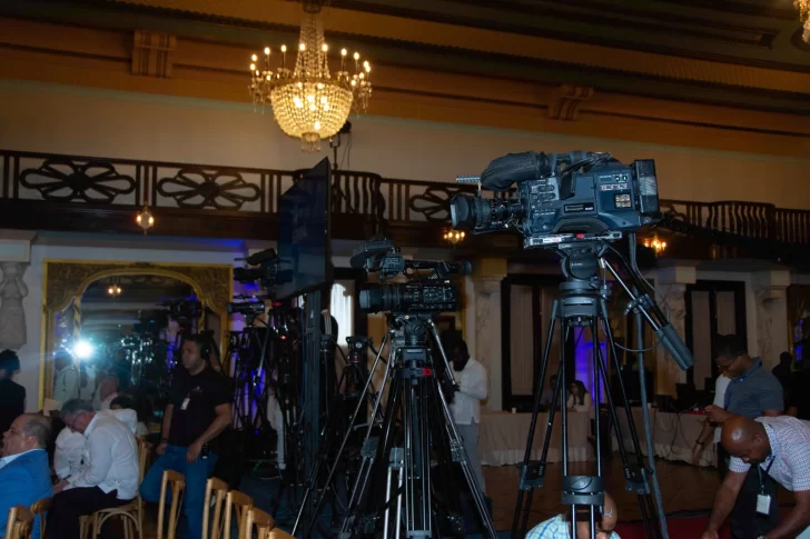 Hay un podium que acoge a unas 10 cámaras televisivas que cada lunes transmiten la alocución del presidente Luis Abinader desde el Palacio Nacional.