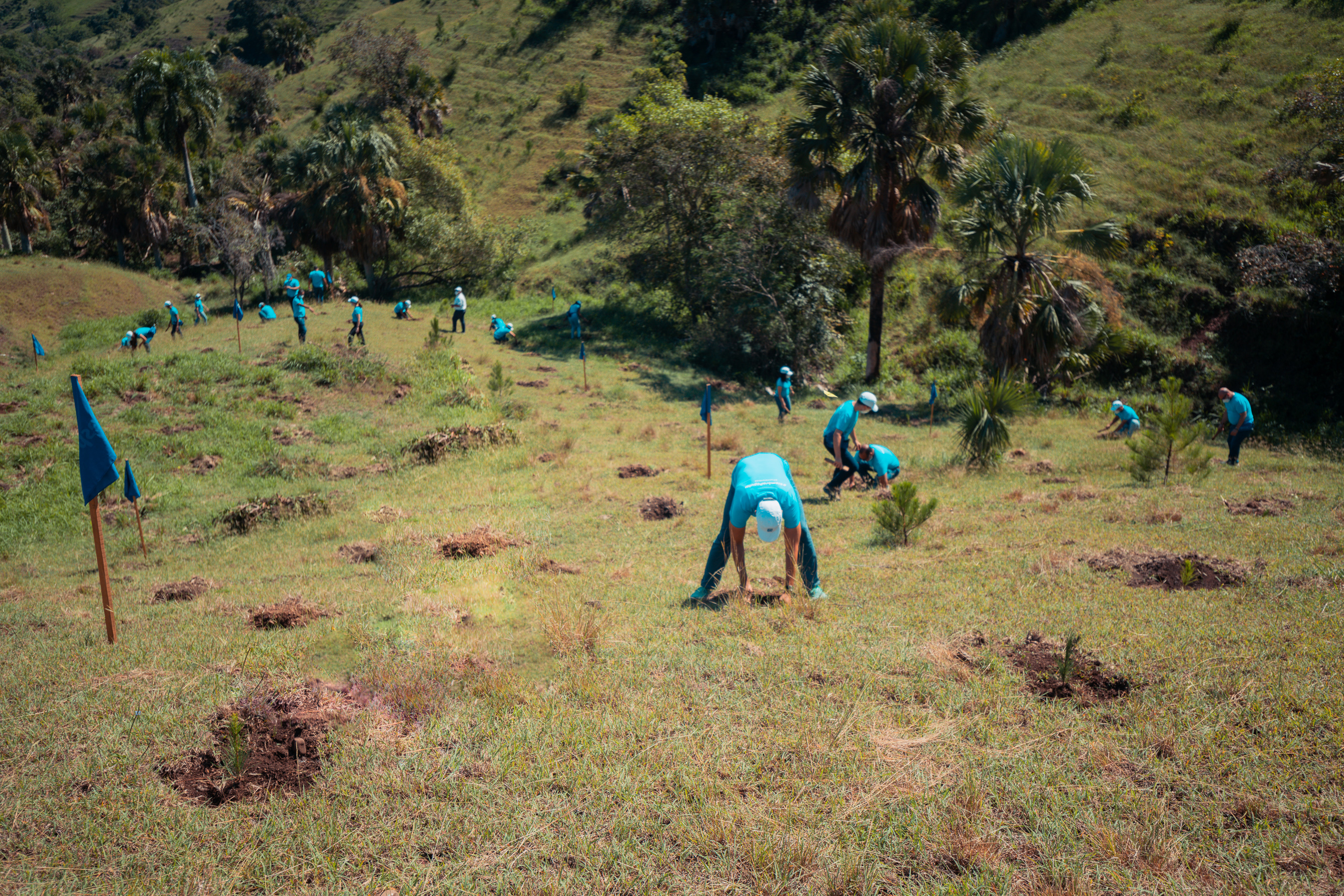 SANTO DOMINGO, República Dominicana.- Para conmemorar el mes de la reforestación y el día mundial de la lucha contra el cambio climático empleados voluntarios del Banco Popular Dominicano, acompañados por el presidente ejecutivo de la entidad bancaria, señor Christopher Paniagua, llevaron a cabo una jornada de reforestación en el Plan Sierra, en la localidad de San José de las Matas, provincia Santiago, en la que sembraron 22,400 árboles, junto a los técnicos de esta importante iniciativa forestal.