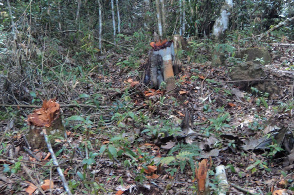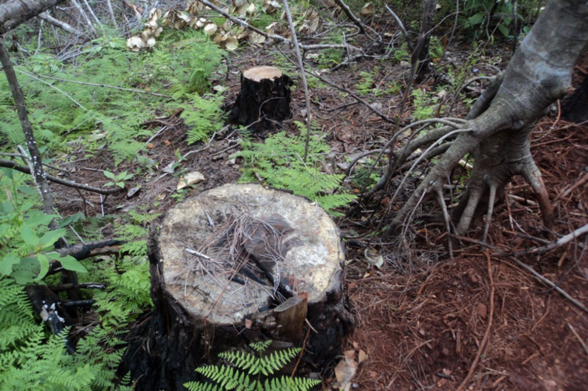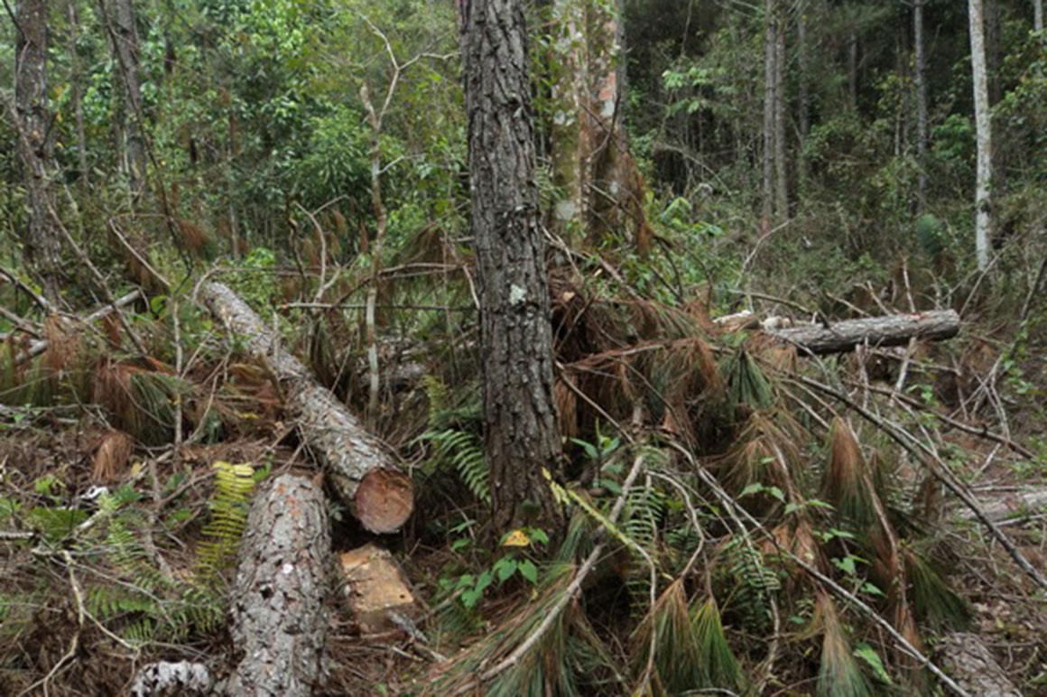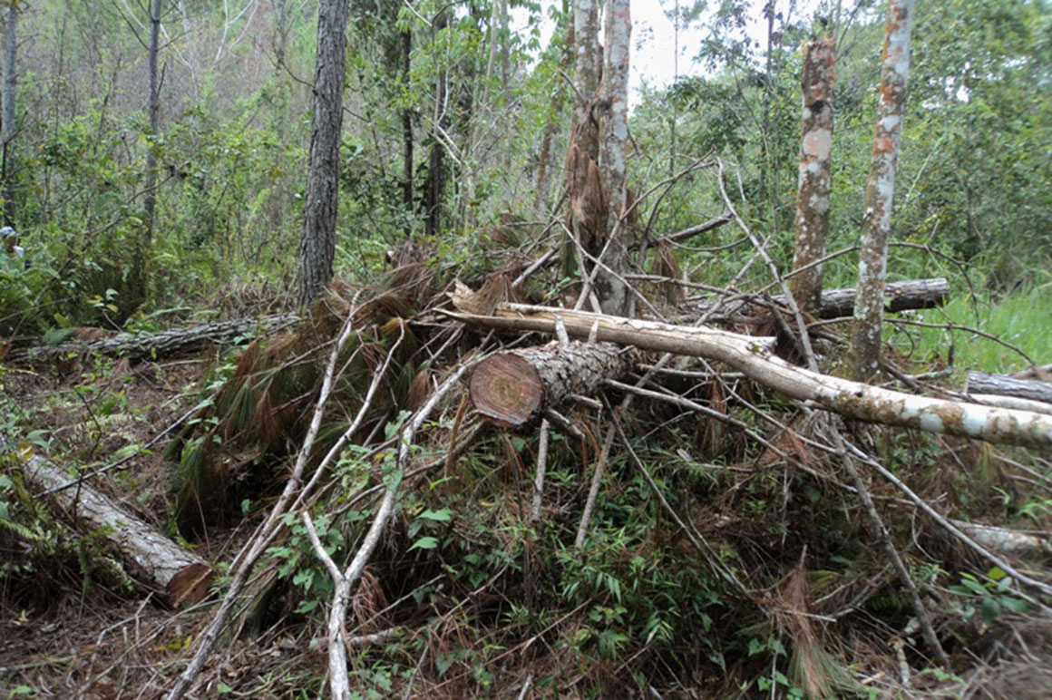 “Pudimos observar el corte a tabla rasa en varios predios, allí entre árboles nuevos y de mediana edad de las especies cigua de chivo (Ocotea floribunda), cigua blanca (Ocotea coriácea), mara (Calophyllum calaba) y los más apreciados como son pino caribe (Pinus caribea) y pino dominicano (Pinus occidentalis).