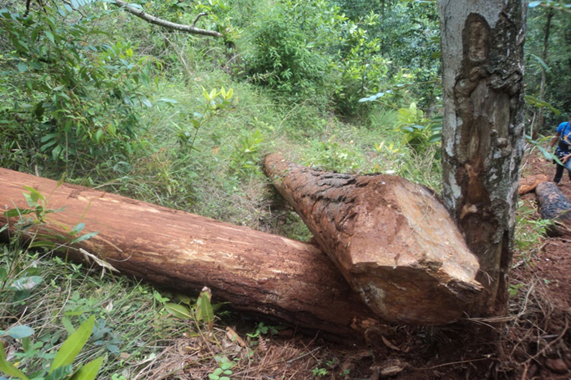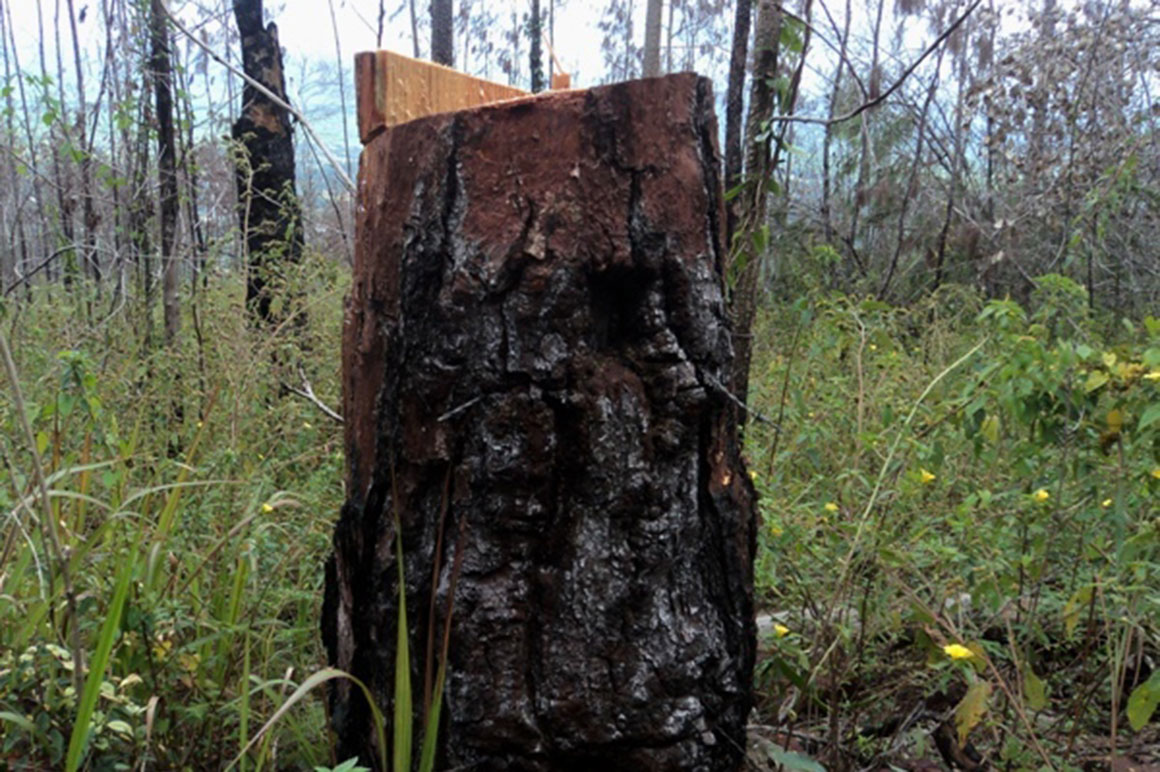 Advierte el informe que los depredadores cortan los árboles en pie e incendian proceden a incendiar los troncos, para simular que se trata de árboles que sufrieron los rigores de los incendios.
