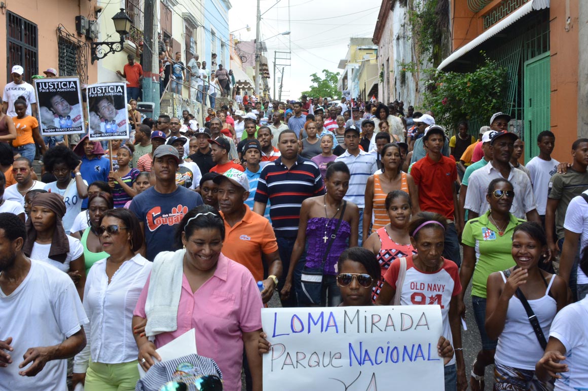 Pancartas, bajantes y banderas multicolores cargaban en sus manos los hombres, mujeres y niños que gritaban al unisonó “Loma Miranda es mío, es de todos”, mientras marcaban a la par los pasos que lo dirigirían hacia el Centro de los Héroes donde se encuentran ubicadas la Cámara de Diputados y El Senado de la República.
