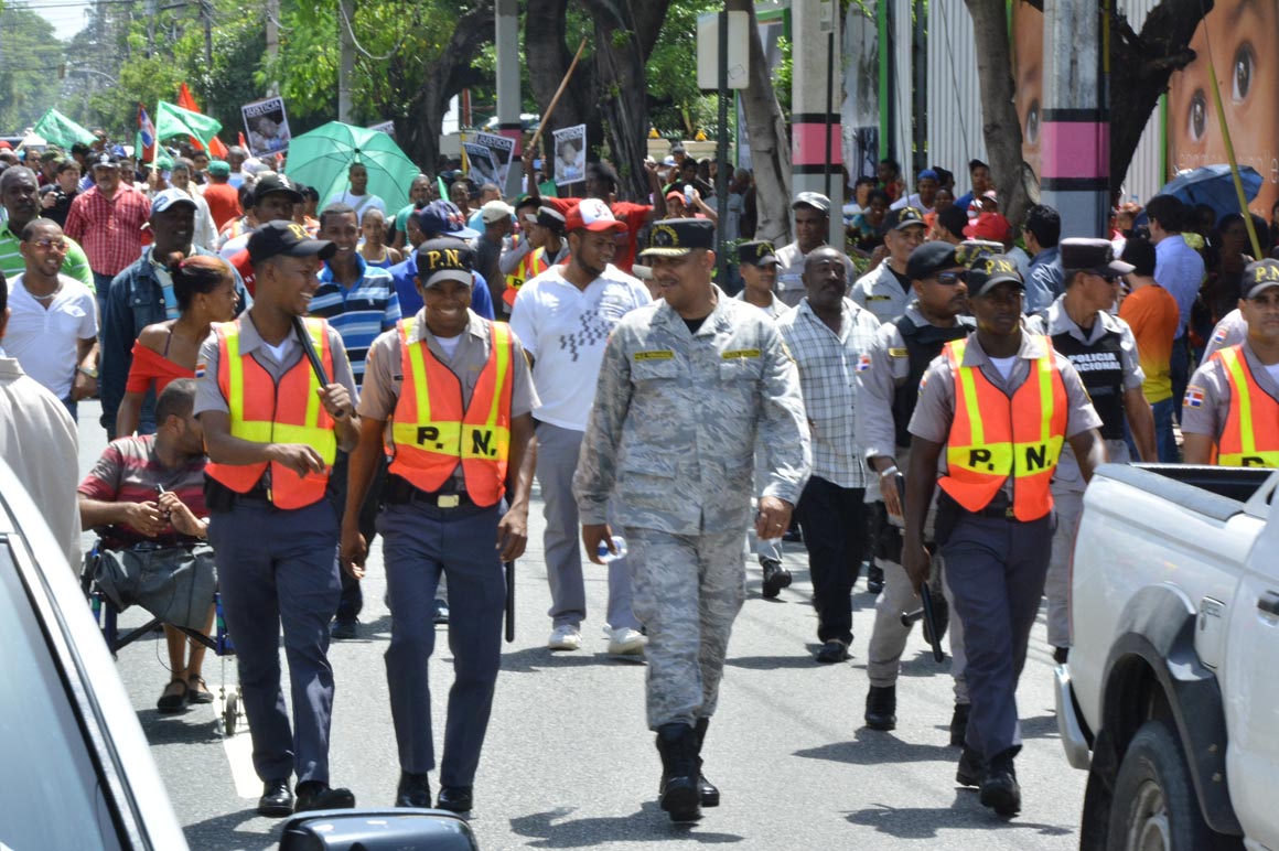 Patrullas de la Policía Nacional y de la Autoridad Metropolitana de Transporte (AMET), custodiaban la caravana integrada por 300 grupos y asociaciones de civiles provenientes del Gran Santo Domingo.