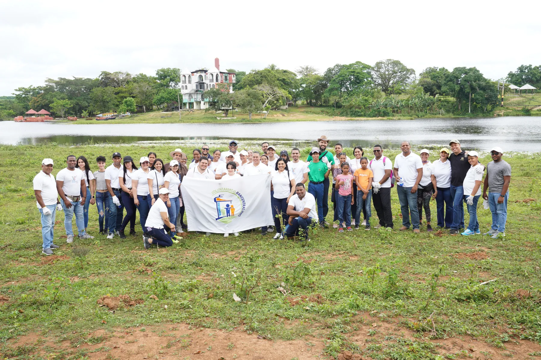 El equipo solidario de mujeres y hombres bancentralianos se desplazó en esta ocasión a la presa de Mijo, situada en La Luisa, Monte Plata, donde se hallaba un terreno provisto y preparado por el ministerio.