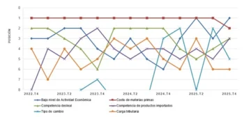En el cuarto trimestre del pasado año (octubre-diciembre 2025), el Bajo Nivel de Actividad Económica se posicionó como el principal obstáculo para la industria, alcanzando el primer lugar del ranking con una incidencia del 2 0 % y desplazando al Costo de Materias Primas, que descendió a la segunda posición con un 15 %.
