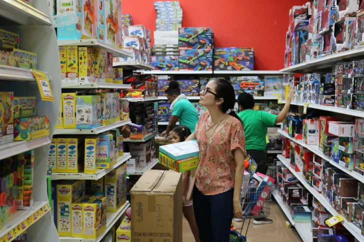 Vehículos salen cargados de regalos envueltos de las plazas comerciales, los tíos hacen las filas para empaquetar, los padres sacan las tarjetas de crédito del bolsillo para pagar y las madres se deciden entre muñecas, juegos tradicionales o carritos tecnológicos.