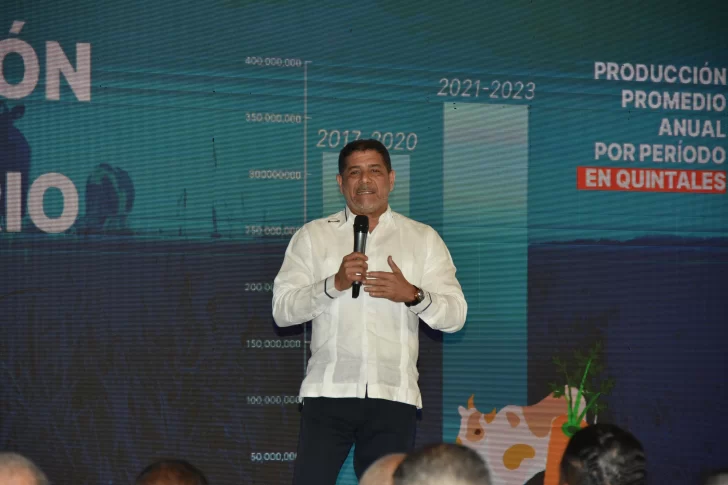 “Esto se debe en gran mayoría porque nosotros nos encargamos de la seguridad alimentaria de los dominicanos, que al cierre del año pasado suplimos el 90 % de los alimentos que demandaba la población”, resaltó el funcionario, arriba del pódium, a unos metros del jefe de Estado.