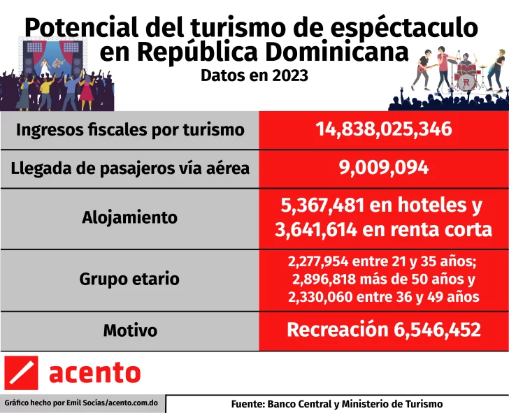 Esta aglomeración de personas impacta directamente en la industria de viajes y turismo de República Dominicana. Así lo aseguró el presidente de la Asociación Nacional de Hoteles y Turismo (Asonahores), David Llibre, quien dijo que los espectáculos ofrecen una oportunidad para diversificar el sector.