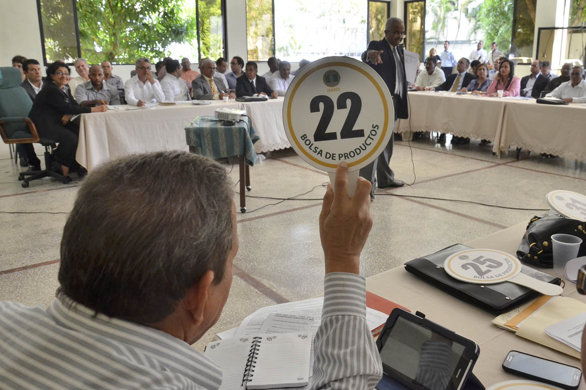 Con el decreto 569-12, el presidente Danilo Medina transfirió a la Bolsa Agroempresarial de la JAD el mecanismo de licitación para asignar los contingentes arancelarios de ocho bienes alimenticios sensibles: arroz, azúcar refino y morena, carne de pollo, ajo, cebolla, maíz, habichuelas y leche en polvo.