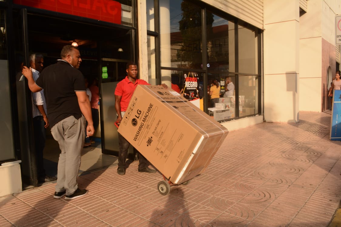 En la llamada Zona Centro, de Santiago de los Caballeros, se observó a cientos de personas que salían de las tiendas con electrodomésticos y otros artículos.