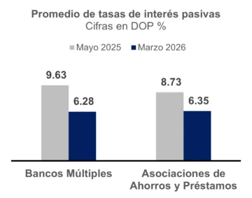 En el caso de los bancos múltiples dicha tasa se redujo en 335 puntos básicos, al pasar de 9.63 % a 6.28 % en el período de mayo 2025 – marzo 2026.