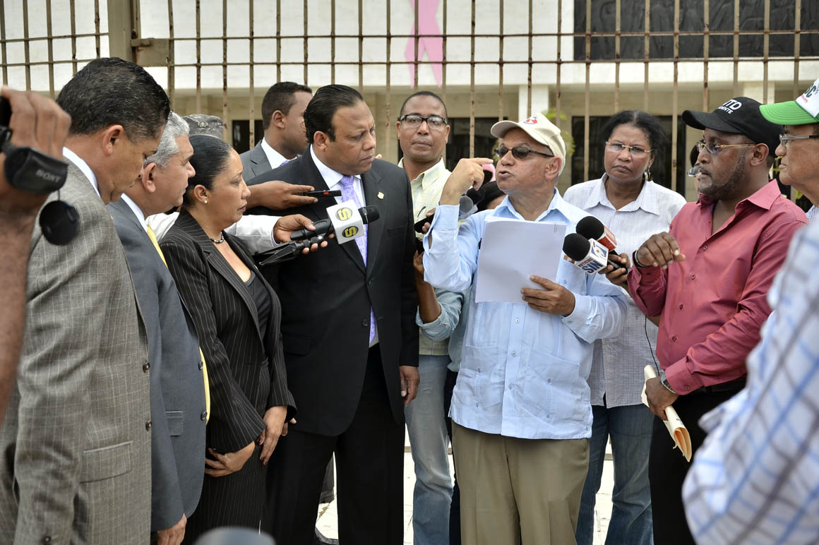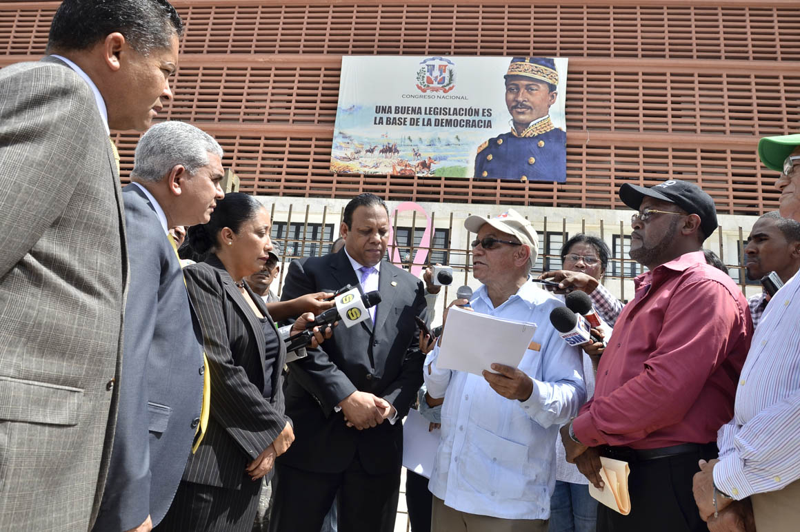 Momentos después llegaron hasta el Palacio del Congreso Nacional. Fueron recibidos por una comisión de diputados encabezados por Guadalupe Valdez, de la Alianza por la Democracia (APD). A los legisladores, los sindicalistas les entregaron un ante proyecto de Ley Sobre aumento General de Salarios para los sectores públicos y privado, con la finalidad que sea tomado en cuenta para el Presupuesto General del Estado para el 2015.