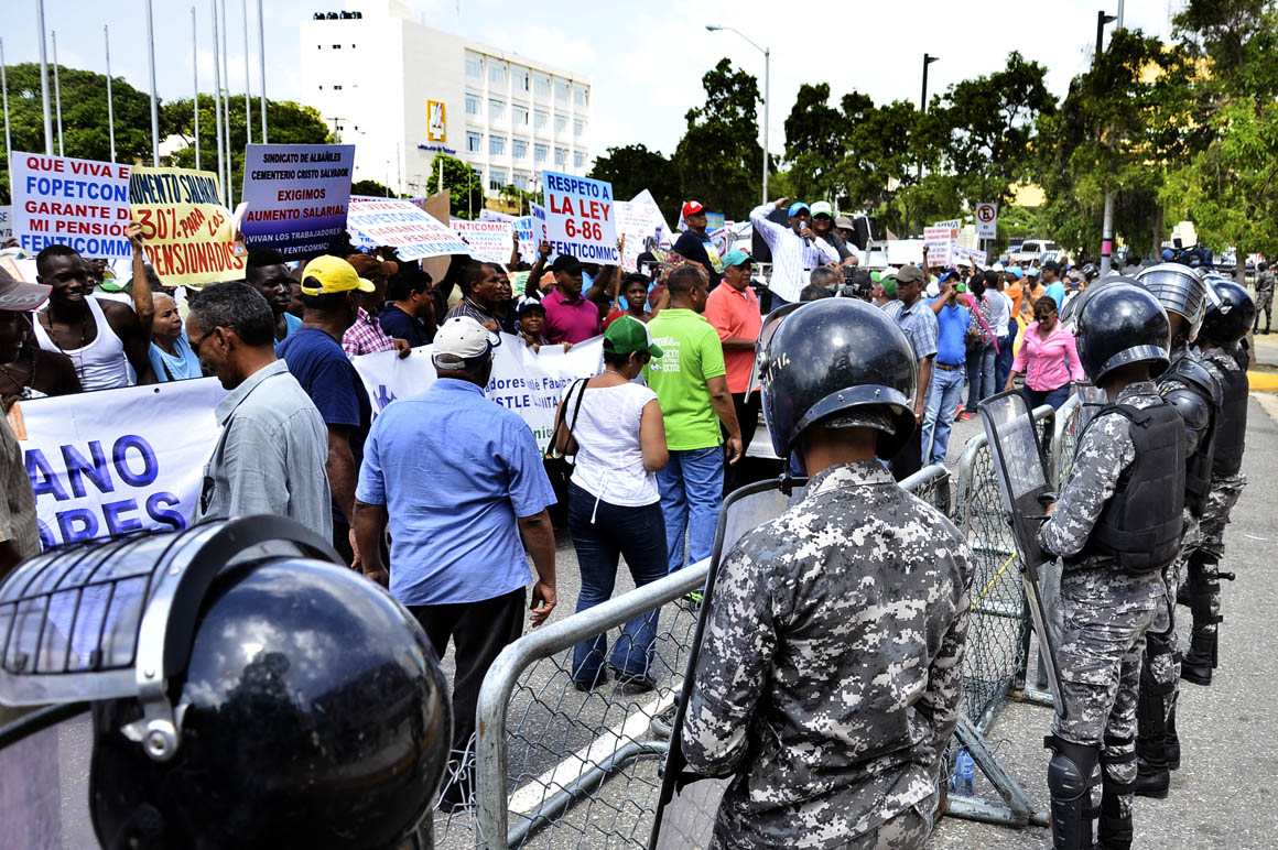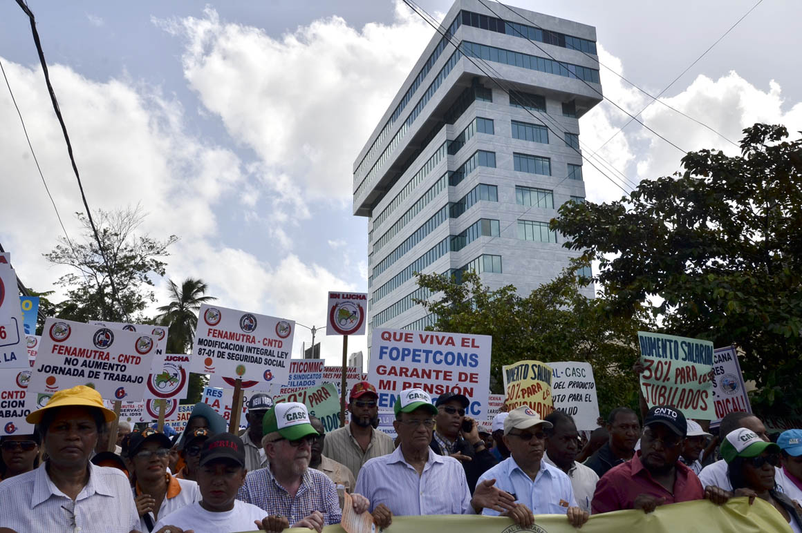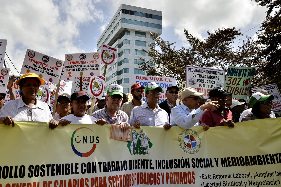 SANTO DOMINGO, República Dominicana.- Los trabajadores dominicanos, representados por las centrales obreras, marcharon este martes con motivo del Día Mundial del Trabajo Decente para exigir del Gobierno y de los patronos un aumento general de salarios, tanto para en el Estado como en el sector privado.