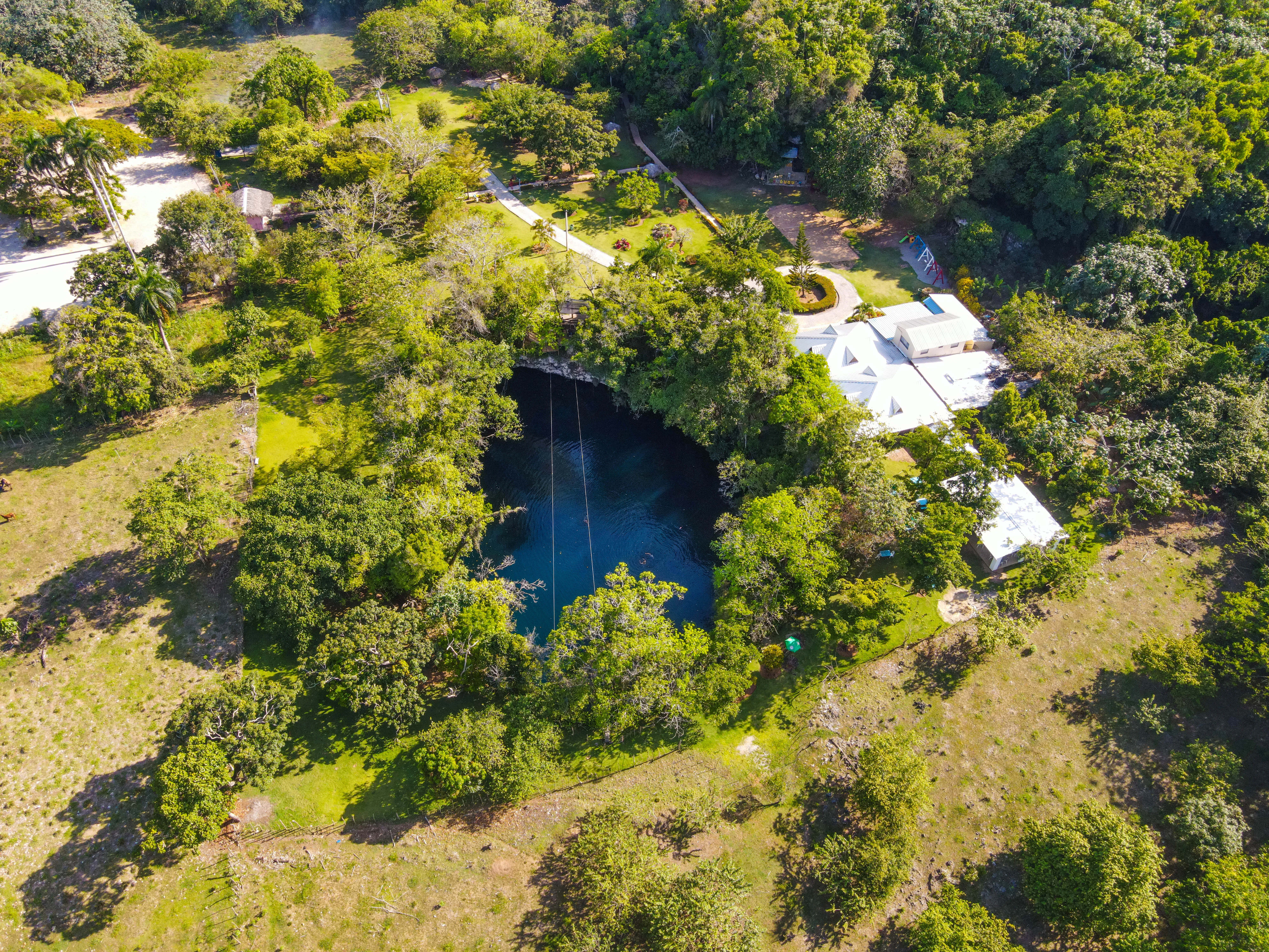 Es una piscina natural de agua fresca, con unos 40 pies de profundidad, aunque sus aguas claras permiten ver el fondo de la laguna.