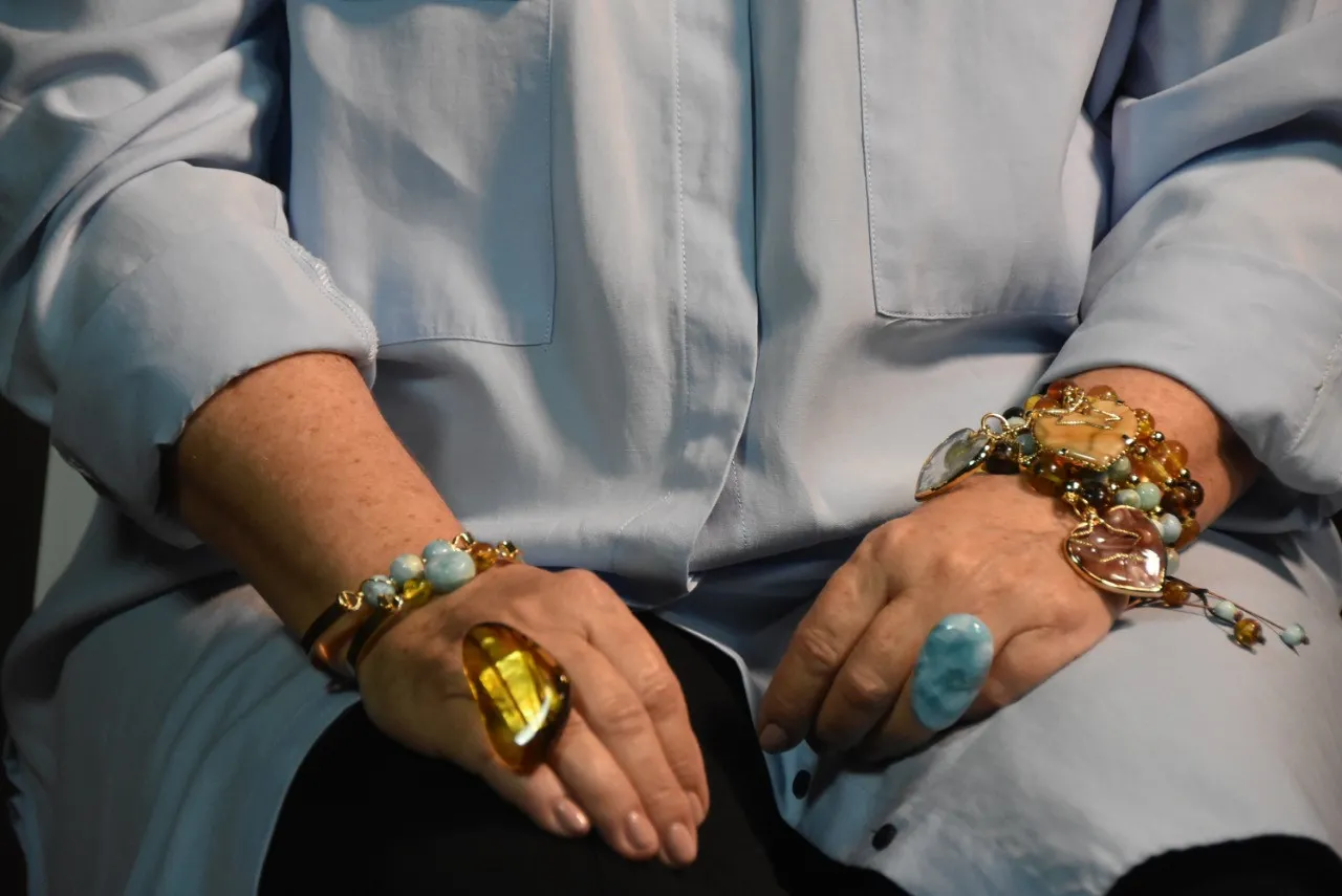 Por décadas de su vida, María José García se dedicó al ejercicio del derecho. Fue abogada comercial de artistas como Juan Luis Guerra, Maridalia y José Antonio Rodríguez. Cuando el “hobby” de su papá quedó en sus manos, comenzó a formalizar su emprendimiento en artesanía. El negocio lleva el nombre de Dominican Designs. El equipo se especializa en el diseño y fabricación de accesorios con ámbar y larimar, y llega a los clientes a través de Uber Flash.