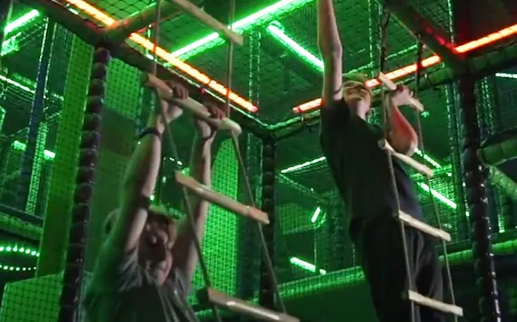 Obstáculo vertical de cuerdas. Se trata de una atracción de alpinismo con un circuito de cuerdas de 18 metros de altura.