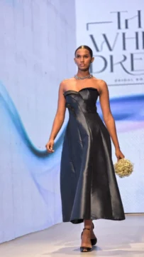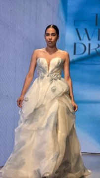 El azul funciona como hilo conductor en la propuesta presentada por The White Dress durante el cierre de su desfile en el RD Bridal Week 2026, retomando la tradición “something old, something new, something borrowed, something blue”.
