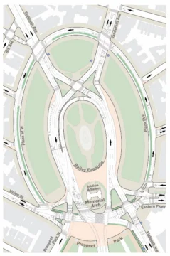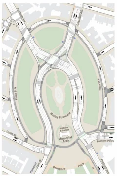 La propuesta —que cuenta con el respaldo del 85% de los 3.600 vecinos encuestados en talleres realizados a principios de 2024— contempla conectar el arco con la Fuente Bailey y la entrada al parque, recuperando la visión original de Olmsted: una plaza que dé la bienvenida, no que intimide.