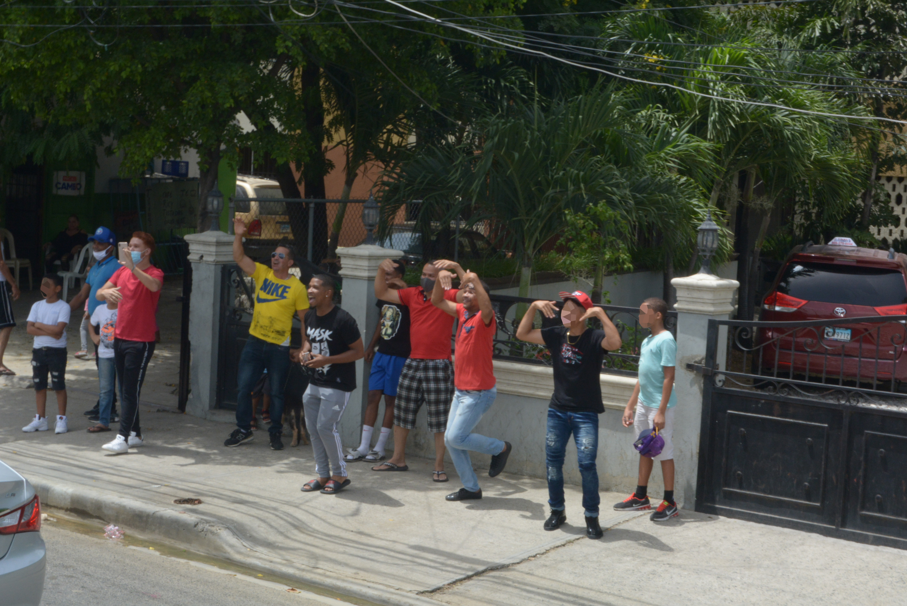 Los peledeístas y los simple curiosos que solo quisieron participar de la improvisada fiesta se lo gozabn todo. Bailaban, hacían fotos para las redes sociales y se agrupaban sin ninguna distancia interpersonal, como si no existiera el peligro del contagio del coronavirus en la República Dominicana, sobre todo en Santiago, una provincia que suma 2, 212 casos positivos y 100 muertes, por esta enfermedad.
