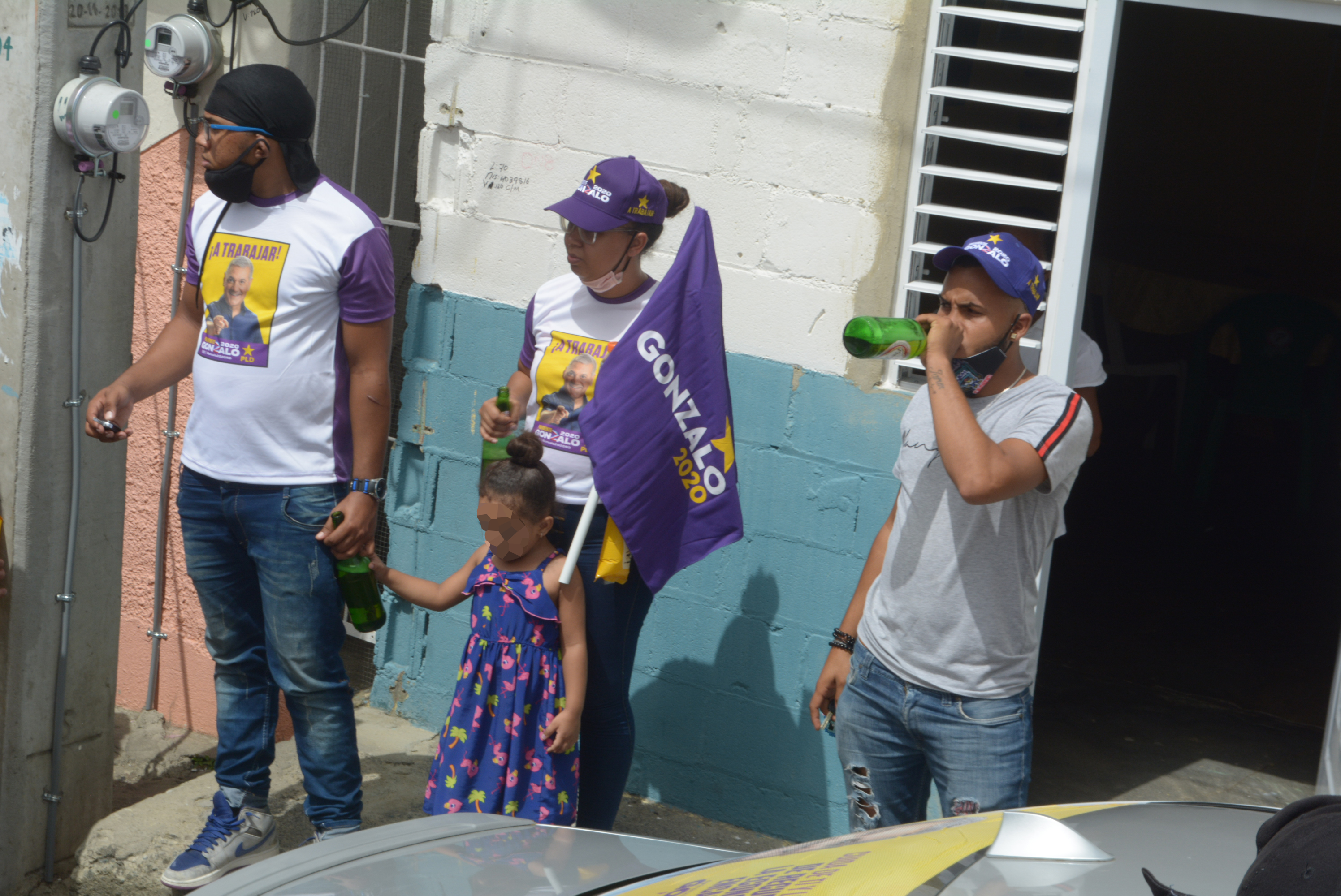 Los convocados llegaron con sus cubreboca al desfile, pero entre la espera, el calor, los tragos y la animada conversión, las mascarillas terminaron colgadas y sin cubrir nada más que parte del cuello o el pecho de los presentes. Otros, simplemente no usaron las mascarillas, en clara señal de desafío al riesgo de contraer la enfermedad. No repararon en nada, pese a que acudieron con niños.