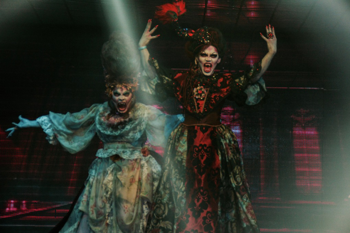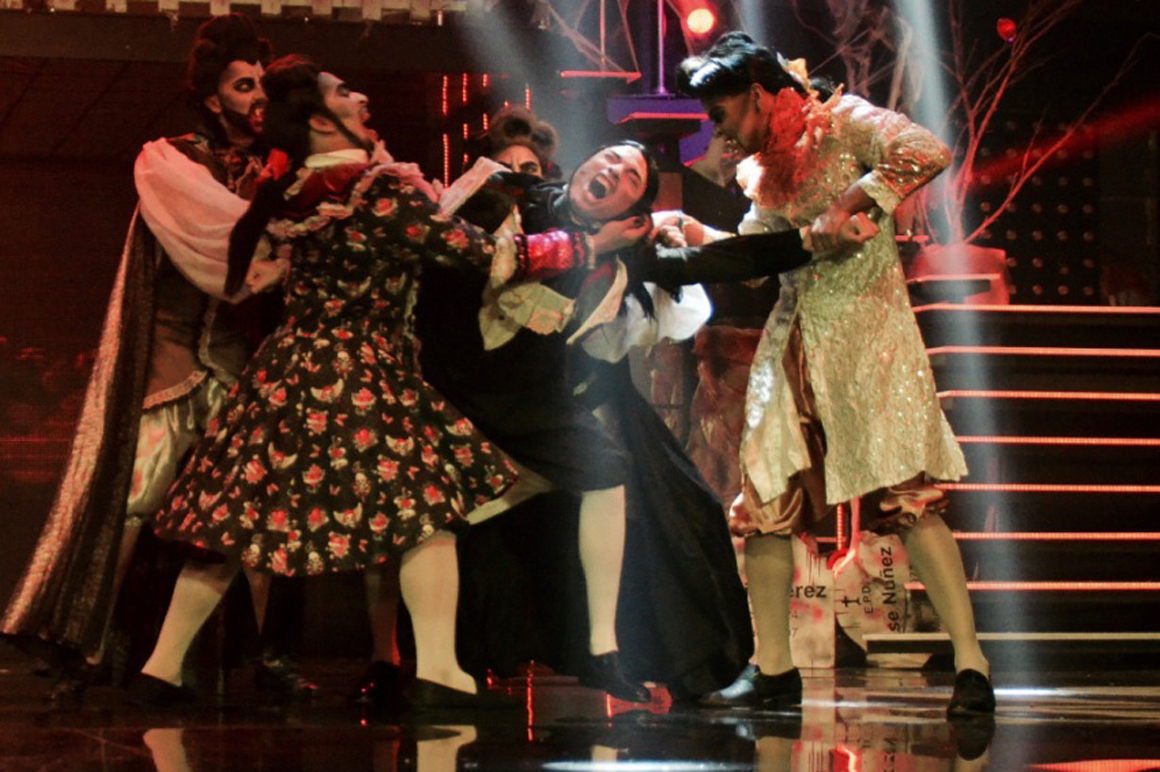 Ambientado en los XVIII y XIX, los integrantes del musical “Luna de Sangre” llevaron vestuario de época, pelucas y trajes de fantasía, que fueron complementados con el maquillaje aplicado por el experto boricua en transformismo Edwin Irizarry. Mientras que el repertorio musical convino temas clásicos y modernos.