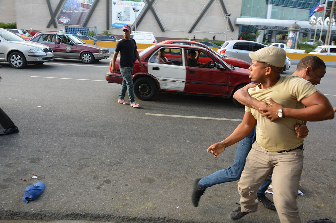 Ambos se desmontaron del un micro bus y procedieron a golpearse delante de los agentes de la AMET, que en ese instante dirigían el tránsito.