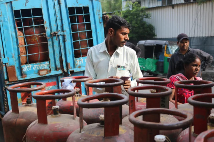 Monika Devi lleva una semana haciendo fila para conseguir una bombona de gas. Cada día, se levanta a las tres de la mañana, toma su cilindro vacío y se desplaza hasta una callejuela de Noida, ciudad satélite de Nueva Delhi, donde el camión de gas solía hacer las recargas.