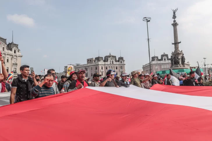 La movilización que congregó a organizaciones sociales, políticas, sindicales y estudiantiles transcurrió pacíficamente en su desplazamiento entre las plazas Dos de Mayo y San Martín, pero a, mitad de camino, se detuvo frente a un cerco policial que impedía el acceso a la avenida Abancay, que atraviesa buena parte del centro de la capital.