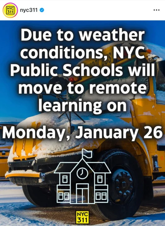Las autoridades de Nueva York confirmaron la suspensión de las clases para este lunes 26 de enero debido a la fuerte tormenta invernal que afecta gran parte del país.