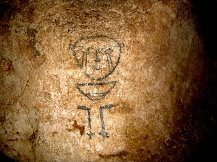 Conjunto pictográfico en el que aparece el quipu, instrumento de cuerdas de algodón usado por los incas. Cueva Hoyo de Sanabe.