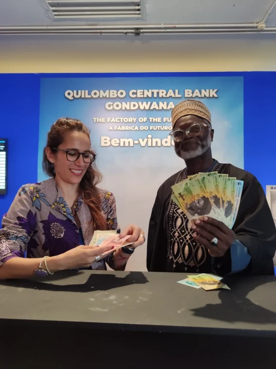 Esta construcción de mundo se basa en comunidades donde la autonomía, la solidaridad, la ancestralidad africana y la reconstrucción de la memoria colectiva negra afloran y se fortalecen. Adicionalmente, otra fuente de inspiración de las que Mansour bebió para desarrollar el Quilombo Bank es el tontine, que es, a su vez, un modelo económico informal africano y una tradición precolonial de ahorro colectivo donde un grupo de personas contribuye regularmente a un fondo común, y cada miembro recibe el total reunido en turnos rotativos. Es un sistema basado en confianza, cooperación, oralidad y economía comunitaria.