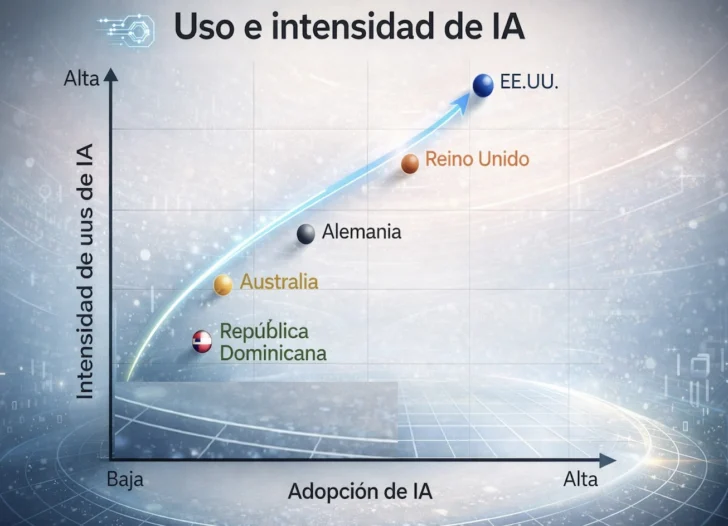 Estados Unidos aparece como el caso más avanzado. La adopción de inteligencia artificial es elevada y, más importante aún, su uso es relativamente más intensivo. Las empresas no solo experimentan con la tecnología, sino que comienzan a integrarla en procesos clave. Aun así, incluso en este entorno más dinámico, el impacto en productividad sigue siendo más limitado de lo que el discurso dominante podría sugerir.