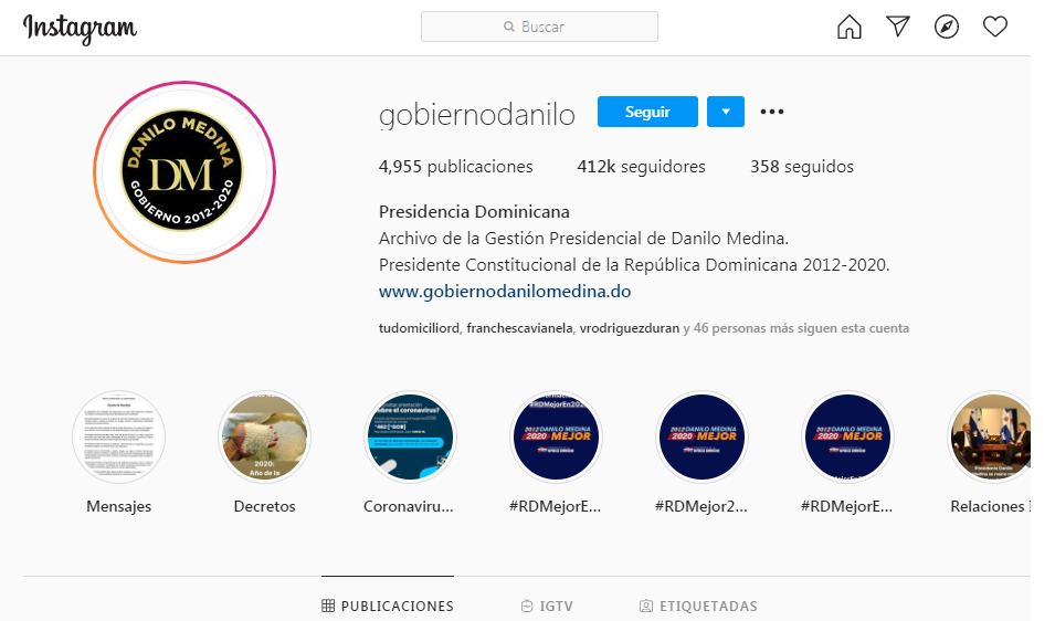 SANTO DOMINGO, República Dominicana.- Horas antes de la juramentación de las nuevas autoridades, las redes sociales de la Presidencia sufrieron modificaciones para pasar a ser archivo del presidente saliente, Danilo Medina.