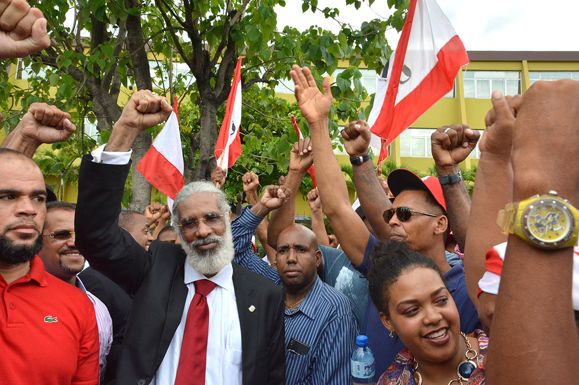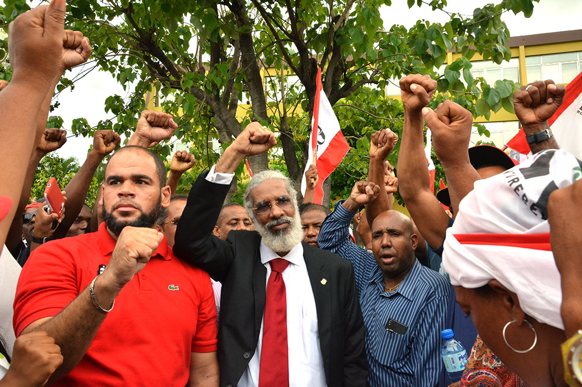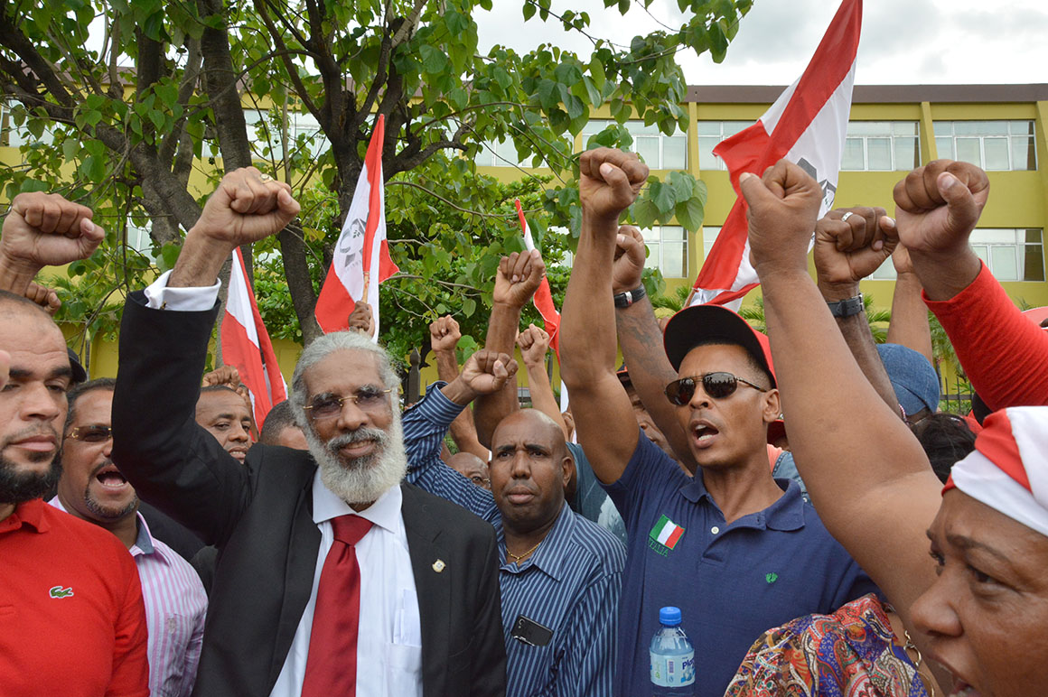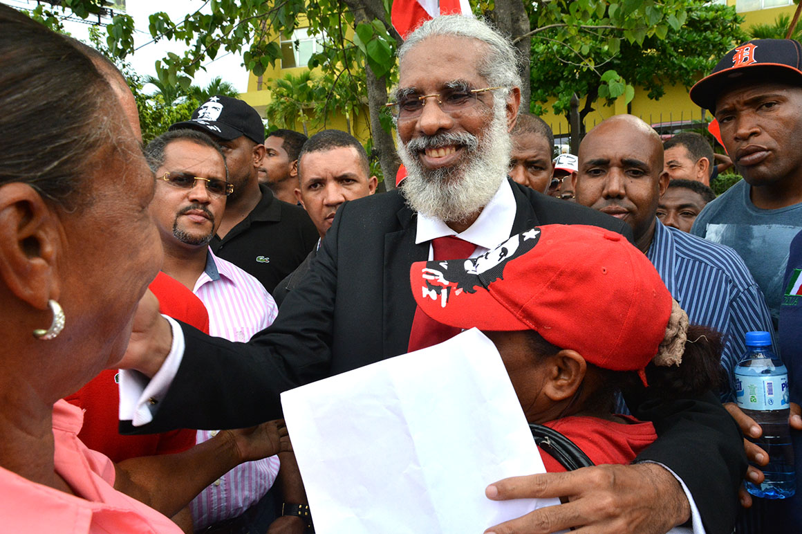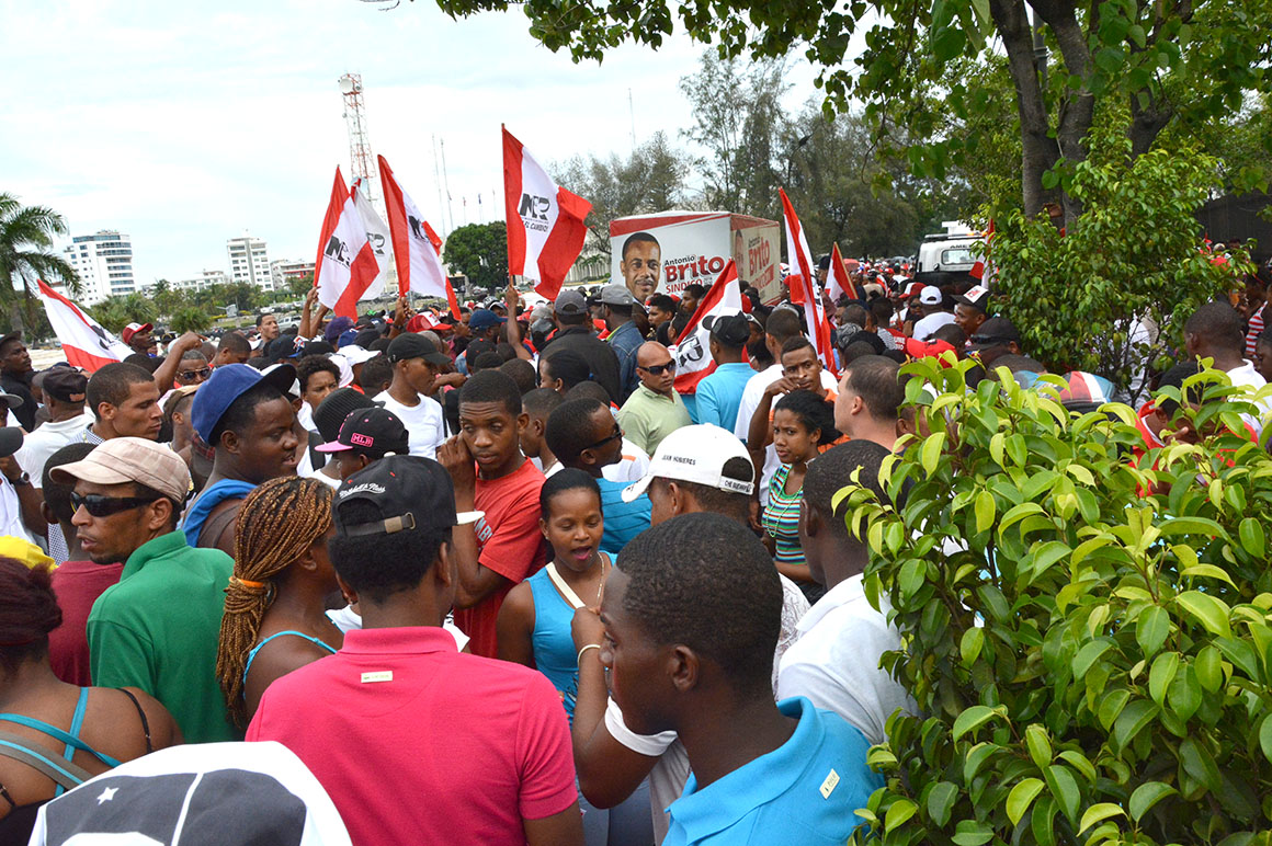 Encabezados por su presidente, Juan Hubieres, cientos de personas se apostaron con guaguas, pancartas, banderas y otros objetos frente a la JCE hasta ser recibidos los documentos.