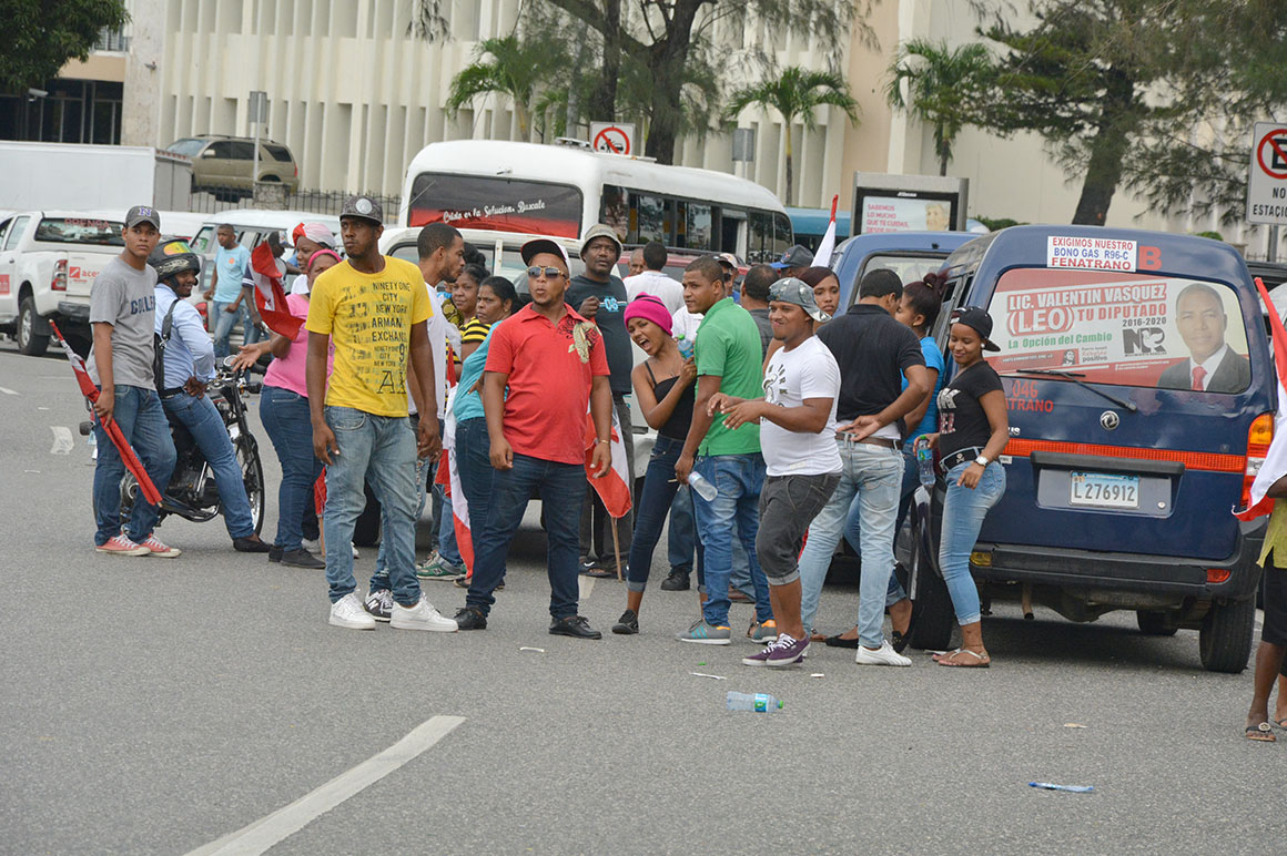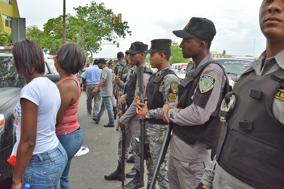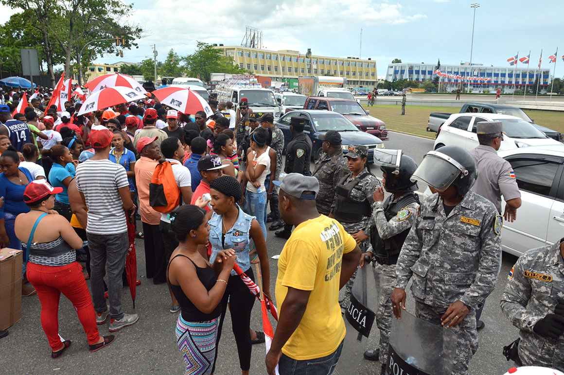 Mientras agentes de la Policía Nacional y militares formaron una hilera frente a los manifestantes en la Avenida Luperón, para mantener el orden; así como miembros de la Autoridad Metropolitana de Transporte (AMET) hacían circular el transito que por la multitud culminó en un gran taponamiento.