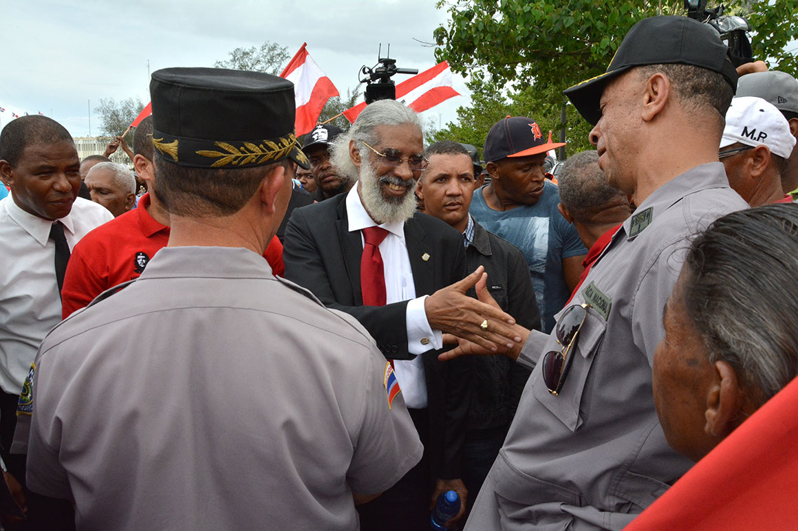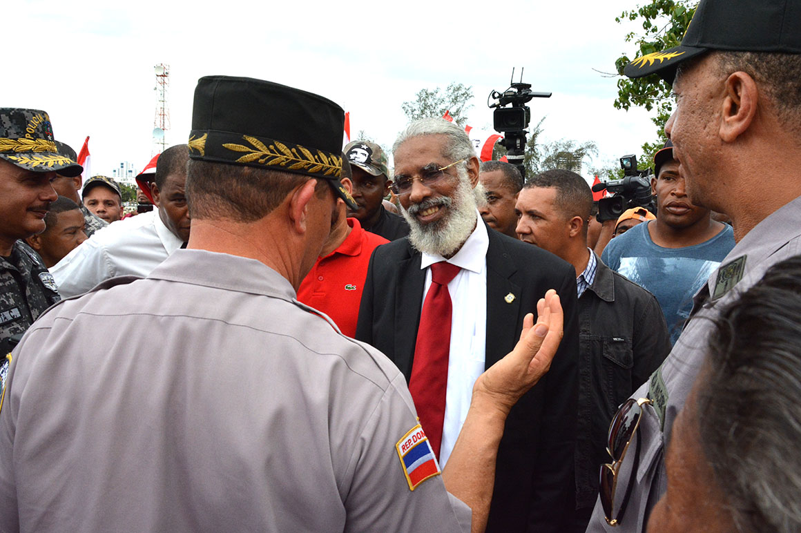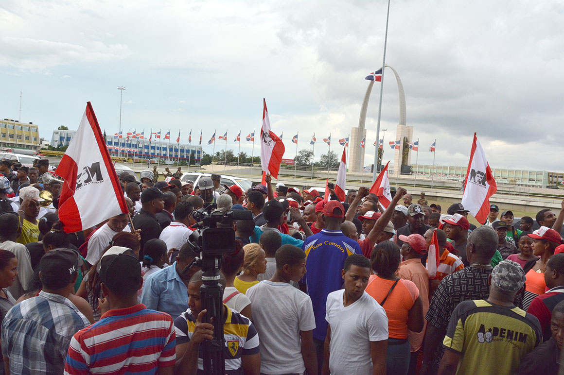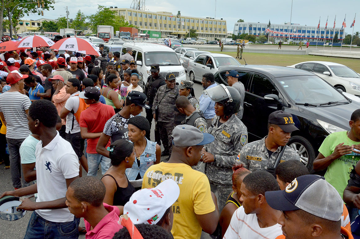 Mientras agentes de la Policía Nacional y militares formaron una hilera frente a los manifestantes en la Avenida Luperón, para mantener el orden; así como miembros de la Autoridad Metropolitana de Transporte (AMET) hacían circular el transito que por la multitud culminó en un gran taponamiento.