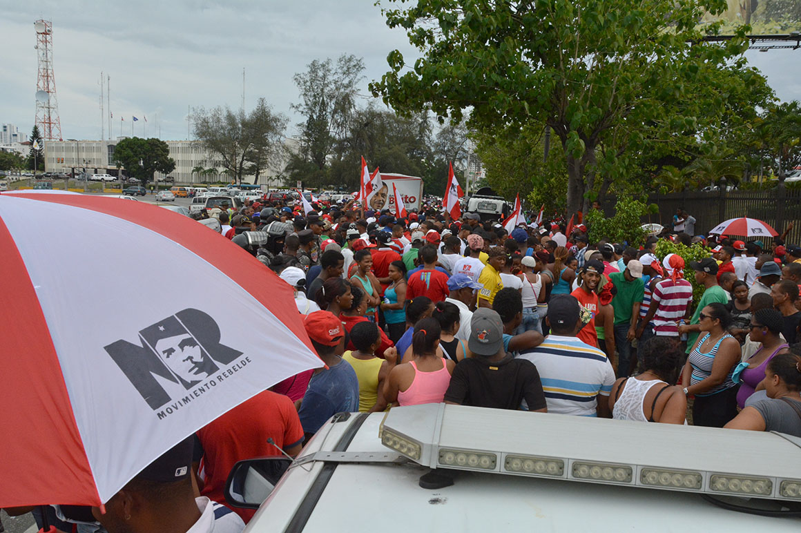 Desde las dos de la tarde, miembros del partido Movimiento Rebelde, choferes Federación Nacional de Transportistas La Nueva Opción (FENATRANO) y sus familiares, se manifestaron con un alto volumen de música.