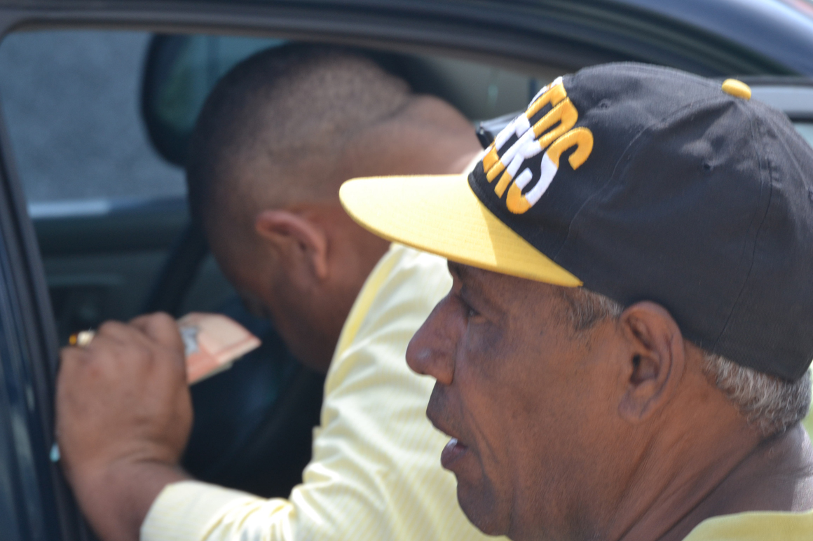 El vehículo placa I052140, con un afiche de la precandidata a diputada, Lidia Peña, vice alcaldesa de Tamboril, servía de improvisado local de despacho. Desde esta guagua todo terreno, aparcada frente al Estadio Cibao, se repartía dinero. Una persona tenía a mano un cuaderno con una lista. Cuando la persona pedía su dinero, le buscaban en la lista para verificar que se trataba de la persona “convocada”. A seguidas se le entregaba la plata prometida.