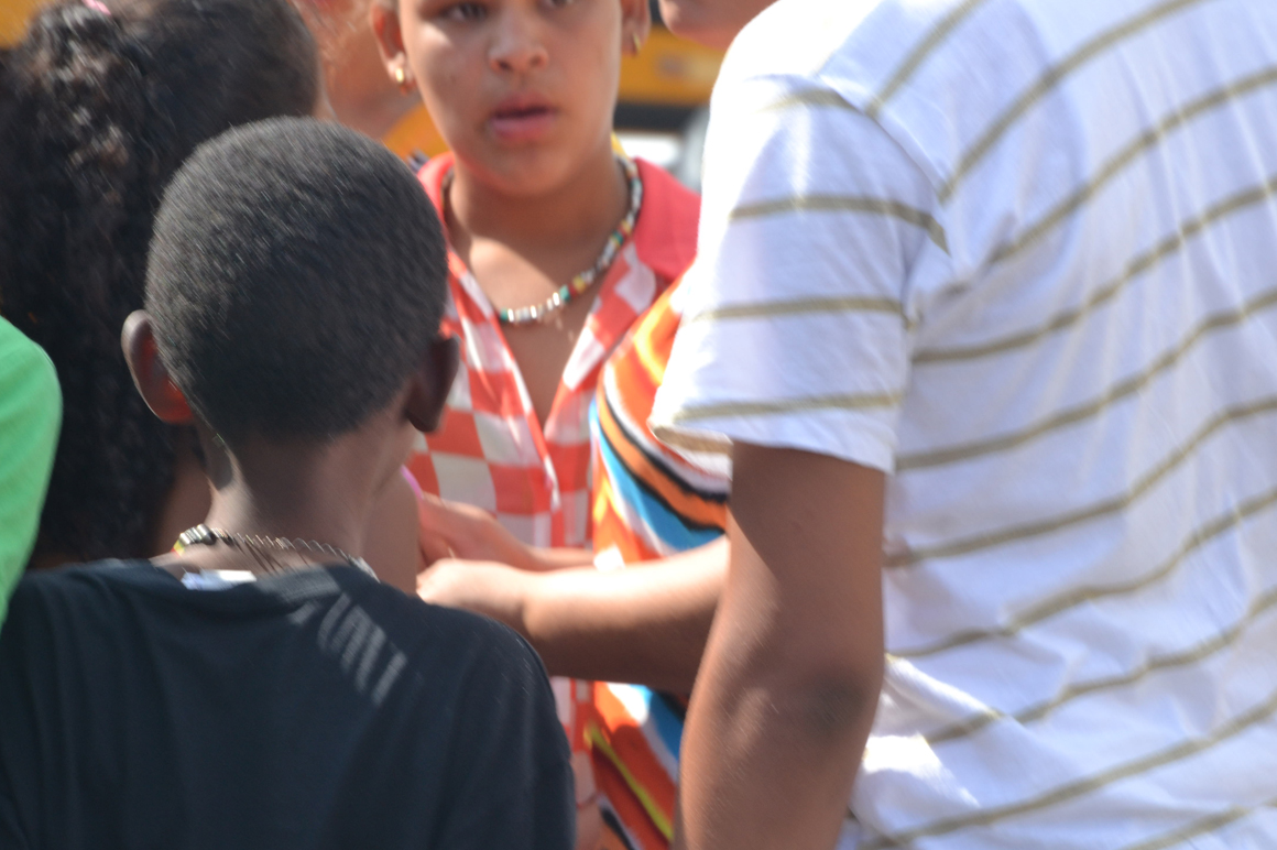 La mujer imparte rápidamente órdenes a sus ayudantes para que formen en una fila a quienes vinieron en la guagua y a cualquier otro que quiera recibir “lo suyo”. Todos recibían varias papeletas, de cien pesos, de doscientos pesos, y los más afortunados de quinientos pesos y más. Antes, habían sido provistos en la guagua de agua y picaderas.