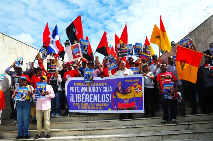 Organizaciones y movimientos de izquierda realizaron este lunes un plantón en la Plaza Simón Bolívar, en el Distrito Nacional, en el que expresaron su rechazo a lo que califican como un “secuestro” del presidente de Venezuela, Nicolás Maduro, y de la primera dama de ese país, Cilia Flores, por parte de Estados Unidos.