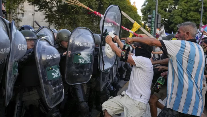 Frente al Congreso, que estaba completamente atrincherado detrás de barreras antidisturbios, miles de manifestantes se enfrentaron a una fuerte presencia policial. De acuerdo con el nuevo protocolo antibloqueo del Ministerio de Seguridad, la policía decidió despejar la carretera ocupada por los manifestantes con porras y gases lacrimógenos.