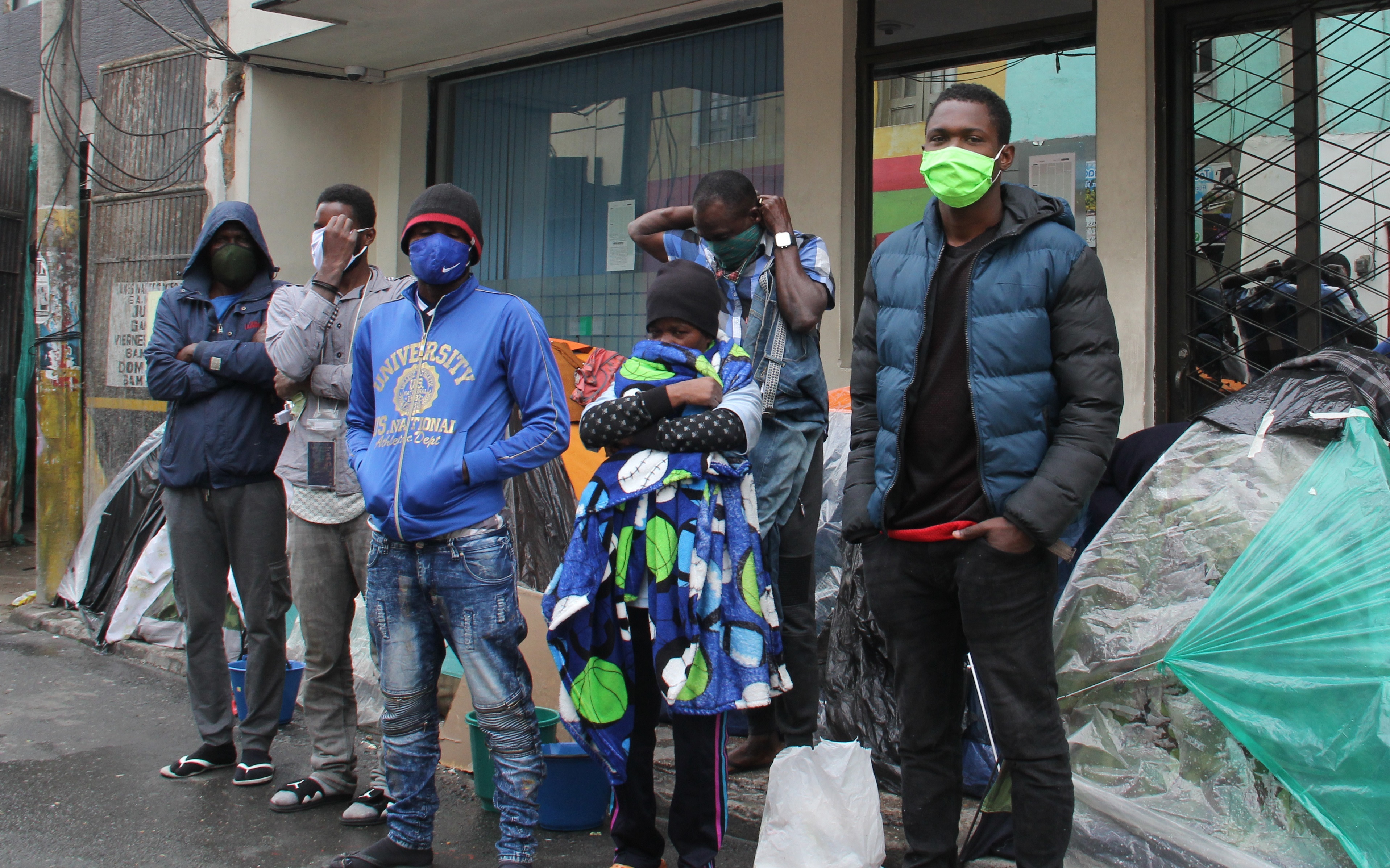 Austin duerme afuera de la oficina de Migración después de pasar quince días debajo de un puente. Todo este tiempo él y sus compañeros han sobrevivido por la caridad de los pastusos que les brindaron la mano incluso cuando para ellos la situación tampoco es buena.